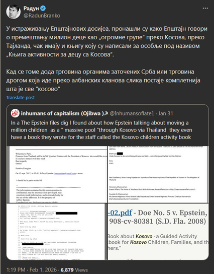 Šta će sve otkriti dokumenti Epštajna o stvarima koje se direktno tiču naše zemlje, ostaje da se vidi. Koliko će država Srbija uspeti da iskoristi sve to u svrhu odbrane naših interesa na Kosovu i Metohiji zavisi od mnogih faktora, ali zasigurno svom snagom treba uperiti reflektore na ovakve stvari. Pogledajte njegovu objavu:
